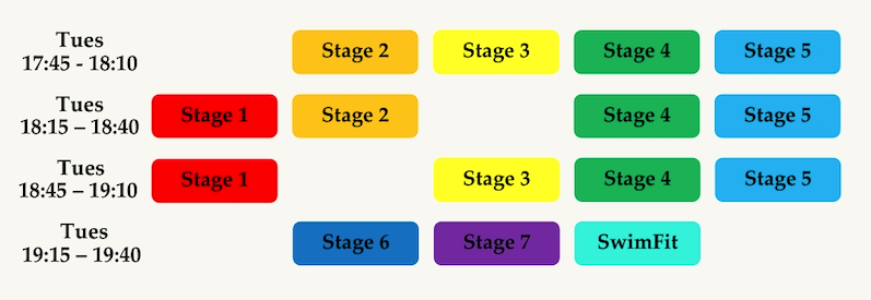 Stages can each be completed in a minimum of 6 months, sometimes more depending on the swimmer’s individual ability.