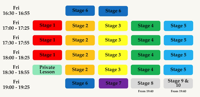 Lessons available to children from 4 years up to adults.